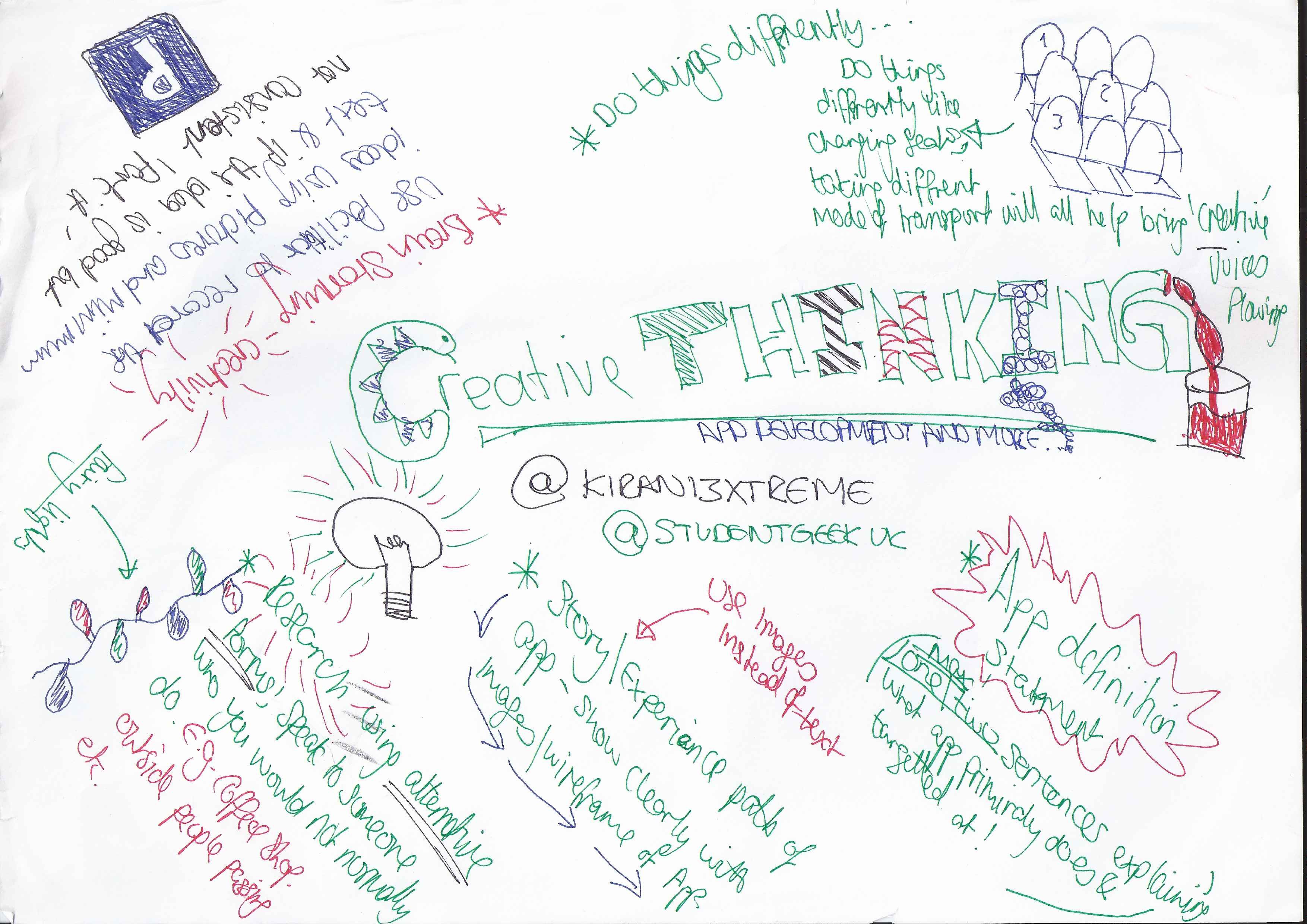 It was an excellent day of practical learning, mixed with fun all delivered by the excellent staff at Qualcomm Offices in London, We had an inspiration run down on mobile app development from Richard, Yuza than onto learning about creativity tools and what can zap them… [Refer above image for rough notes on creativity]